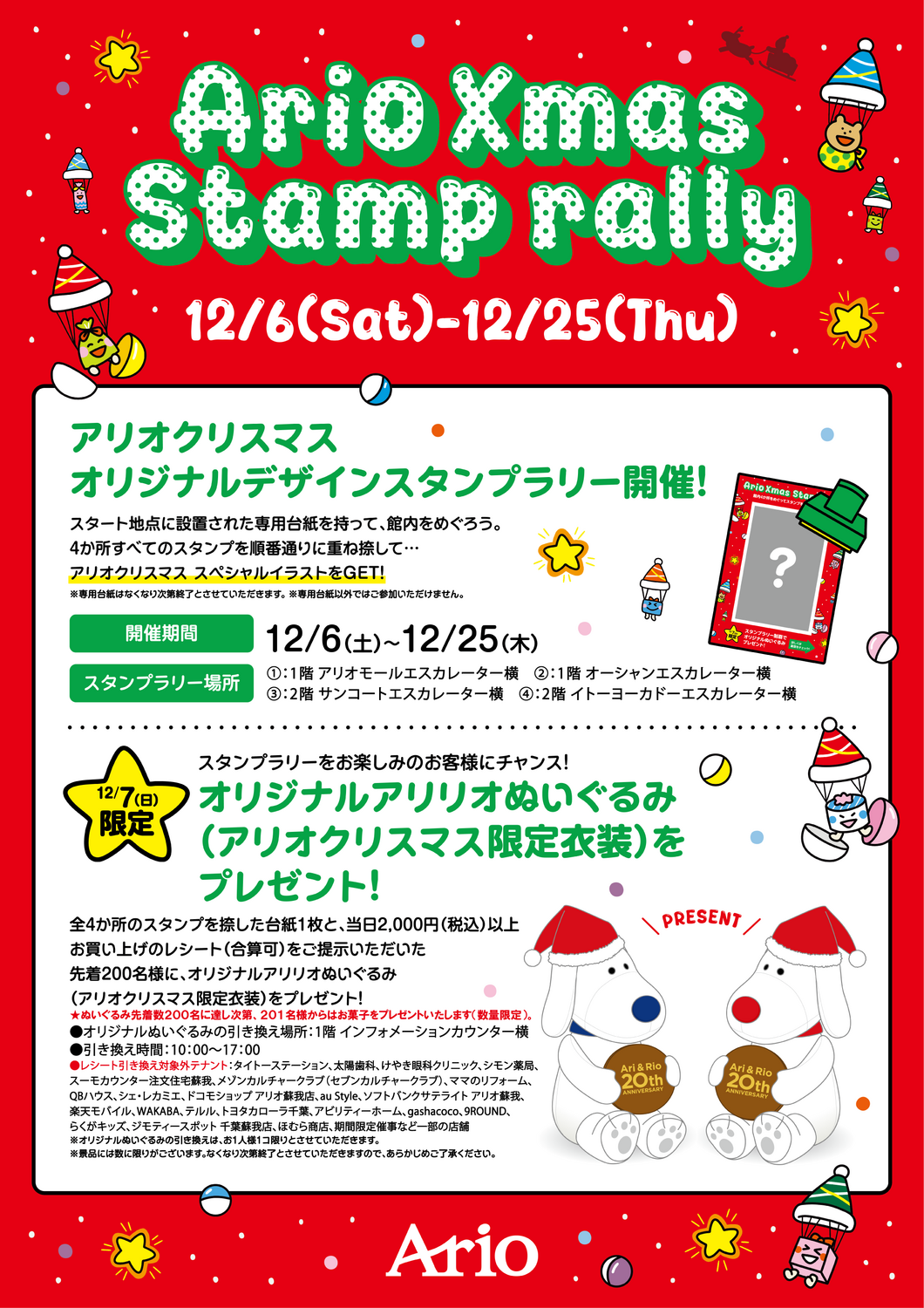 アリオクリスマス オリジナルデザインスタンプラリー開催!