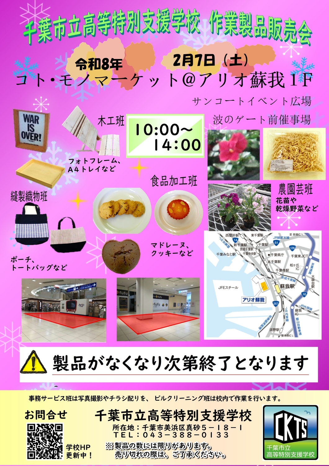 千葉市立高等特別支援学校の生徒が作業学習で作った製品を販売いたします。