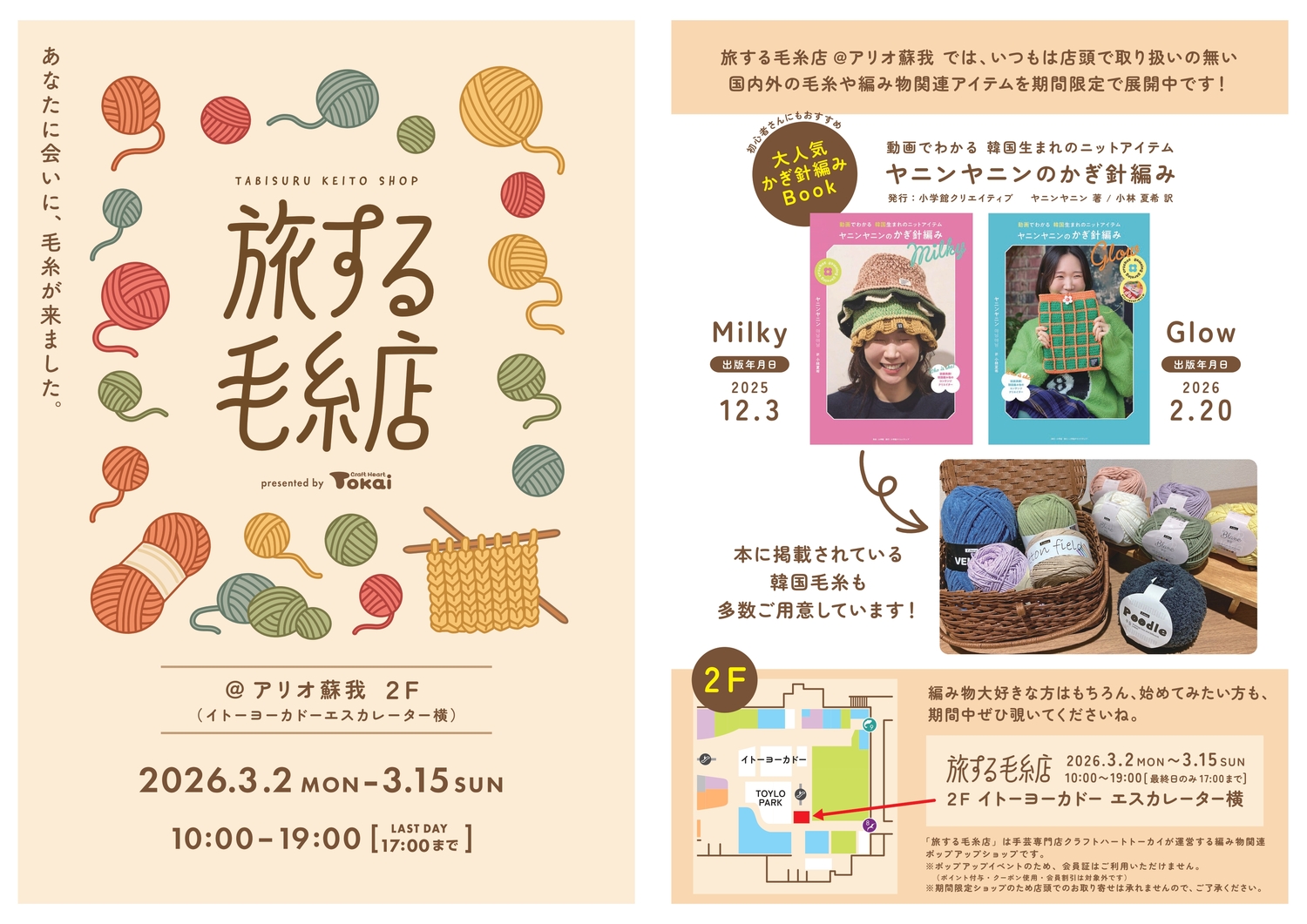 編み物大好きな方はもちろん、始めてみたい方も、期間中ぜひ覗いてくださいね。
