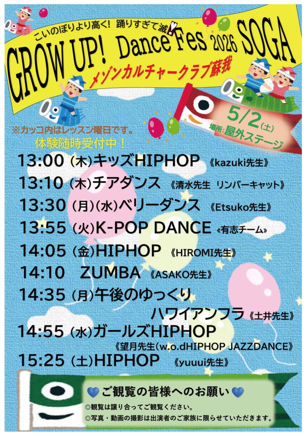 ご観覧の皆様へのお願い