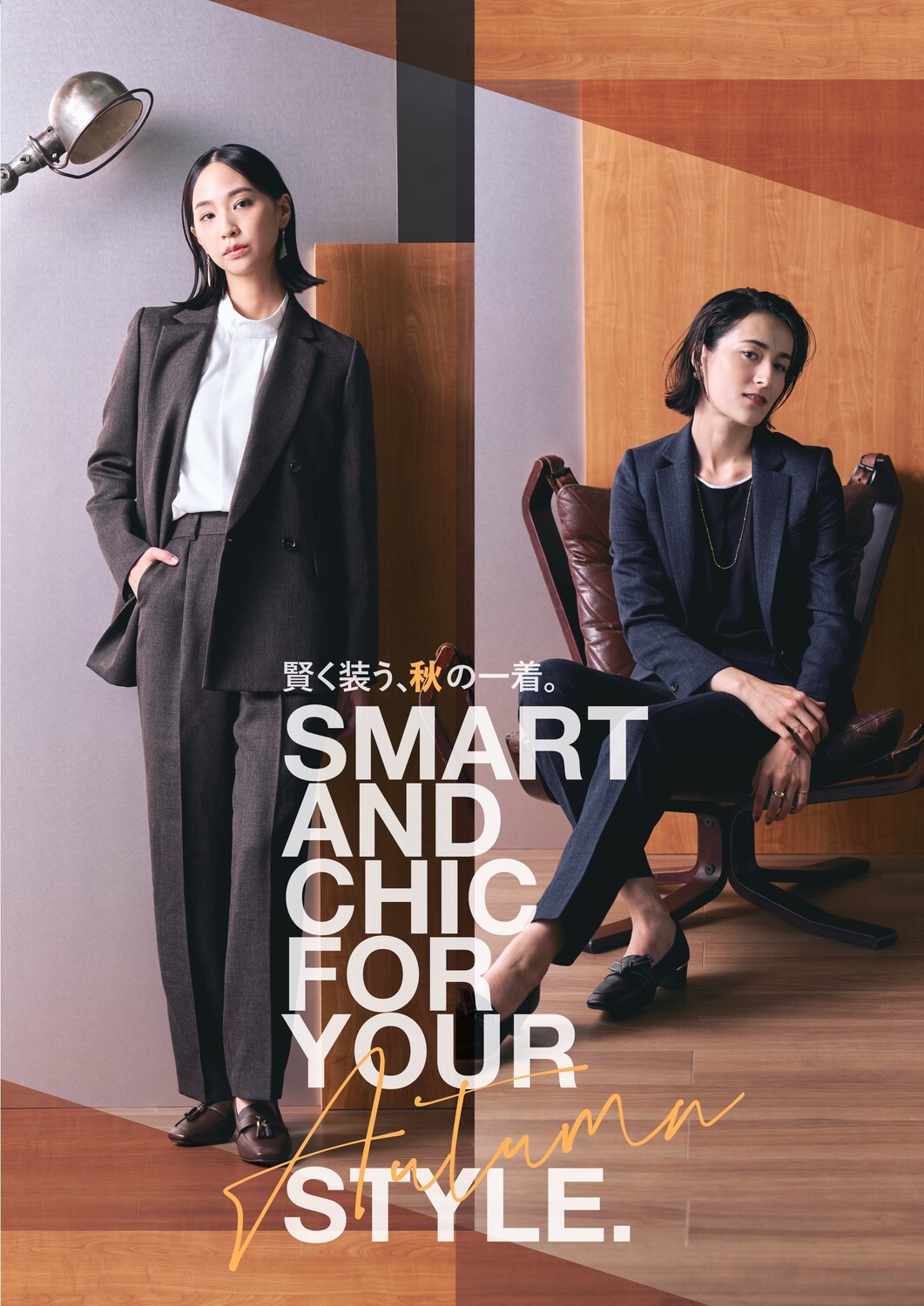 クラシカルな空気感を引き立てるダブルブレスト仕立てで、マニッシュな着こなしを演出します。