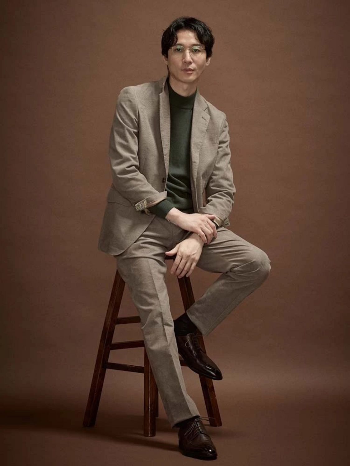 タートルネックとの相性も撥群。ビジネス、カジュアル様々なところで活躍します。