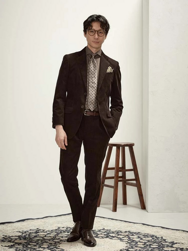 綿×ポリエステルのコーデュロイ生地を使用したセットアップのご紹介です。