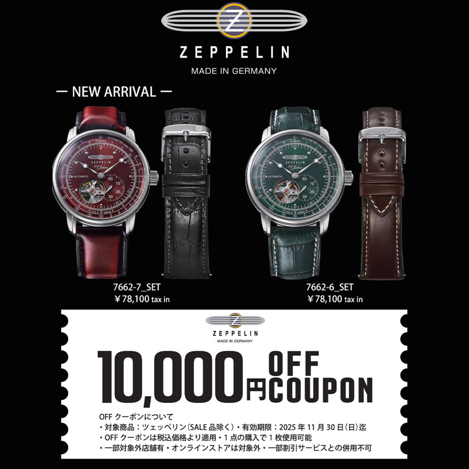 当店では、期間中ツェッペリンの腕時計にお使いいただけるOFFクーポンを配布しております。