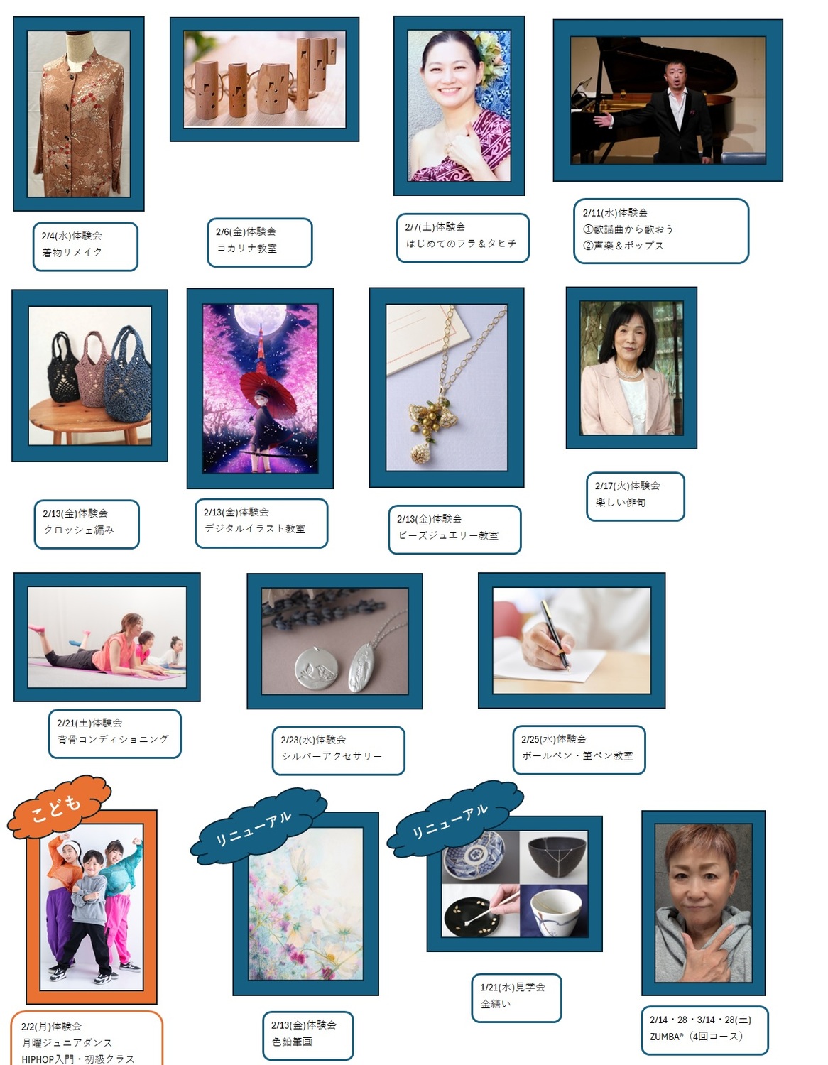□新講座の体験費(講座1回分)が1,100円(税込)に!