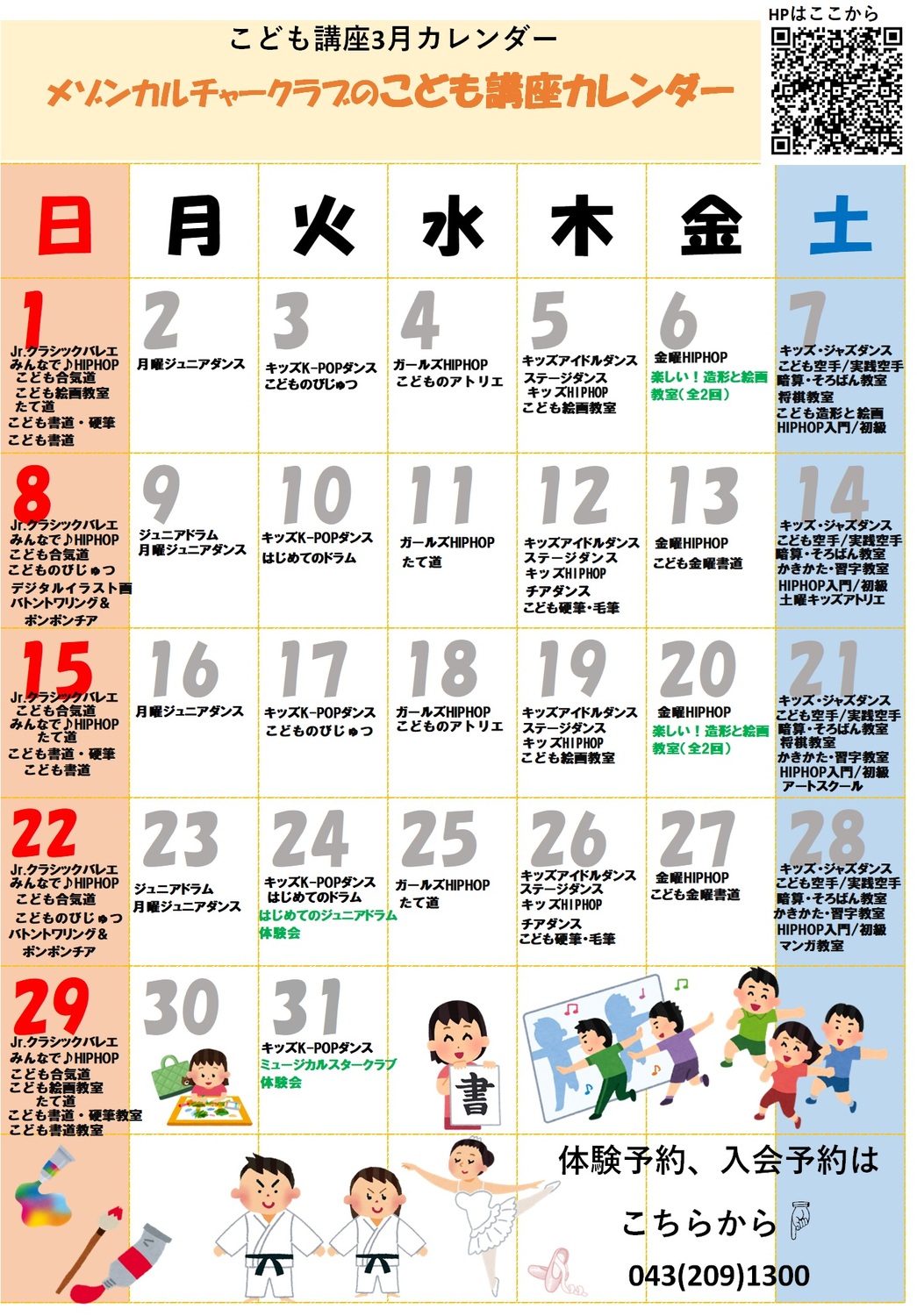 《3月》こども講座カレンダーが
