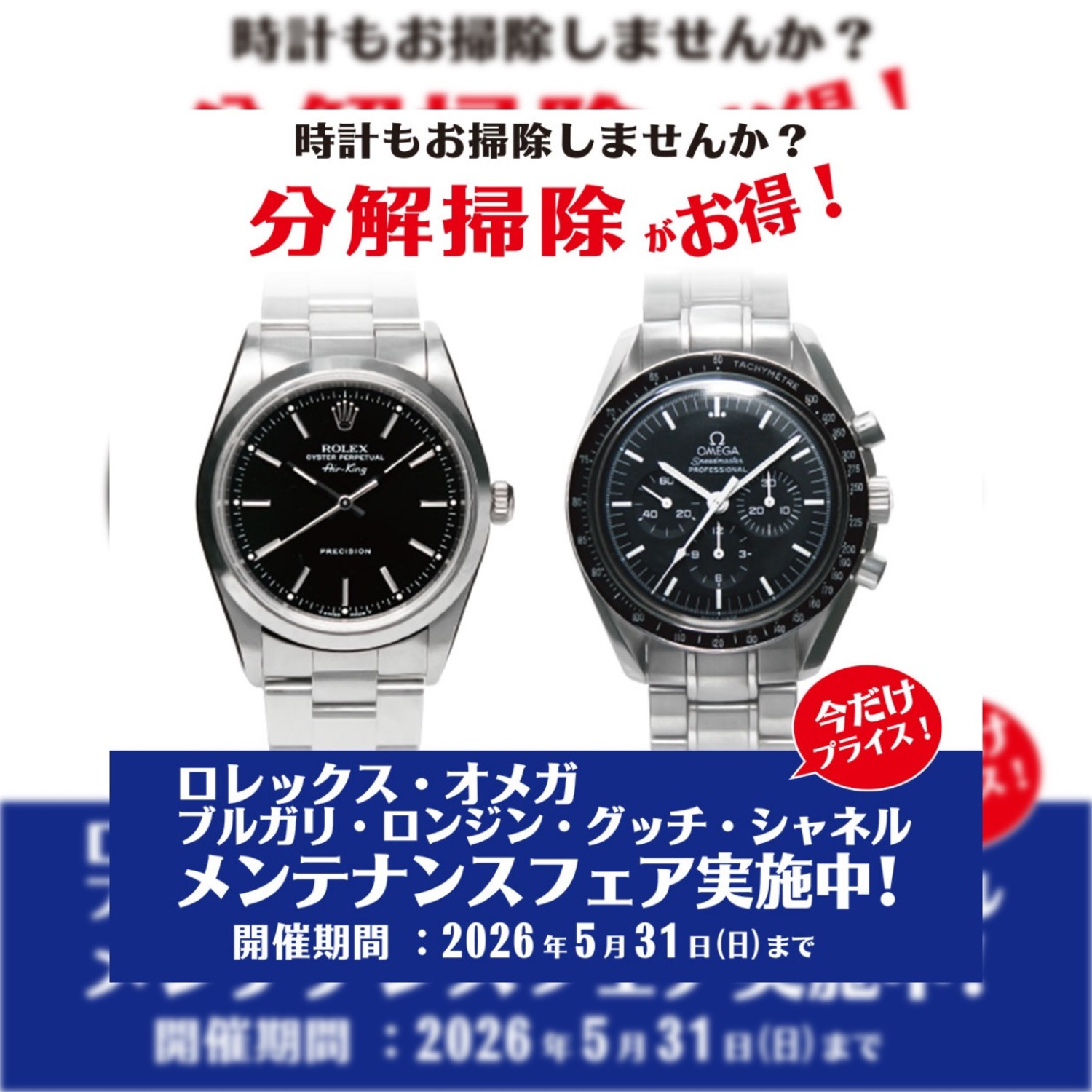 ロレックス・オメガ・ブルガリ・ロンジン・グッチ・シャネル メンテナンスフェア 今だけプライス!