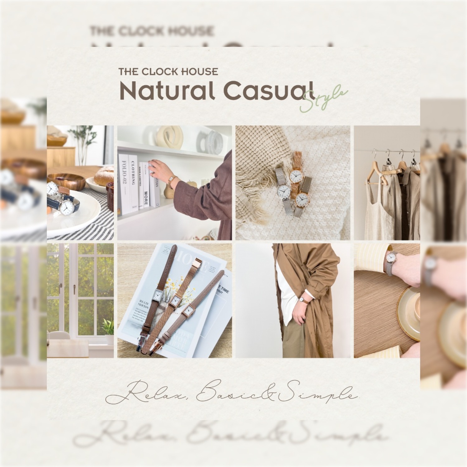 THE CLOCK HOUSE ナチュラルカジュアルスタイルのこれまでのコンセプトはそのままにレクタングルケース(長方形)やピンクゴールドカラー、グレージュカラーなど新たなエッセンスを加えた6モデルが登場。旬のかたちやカラーを身にまとい、いつもとはちょっぴり違うこの春のコーディネートをお楽しみください。